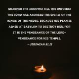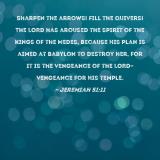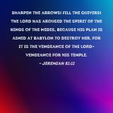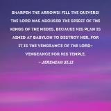 Sharpen the arrows! Fill the quivers! The LORD has aroused the spirit of the kings of the Medes, because His plan is aimed at Babylon to destroy her, for it is the vengeance of the LORD--vengeance for His temple.