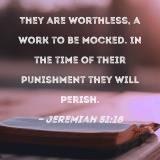 They are worthless, a work to be mocked. In the time of their punishment they will perish.