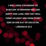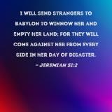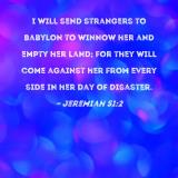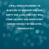 I will send strangers to Babylon to winnow her and empty her land; for they will come against her from every side in her day of disaster.