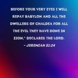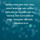 Before your very eyes I will repay Babylon and all the dwellers of Chaldea for all the evil they have done in Zion," declares the LORD.
