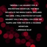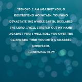 "Behold, I am against you, O destroying mountain, you who devastate the whole earth, declares the LORD. I will stretch out My hand against you; I will roll you over the cliffs and turn you into a charred mountain.