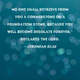 No one shall retrieve from you a cornerstone or a foundation stone, because you will become desolate forever," declares the LORD.