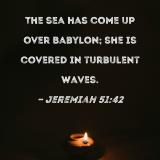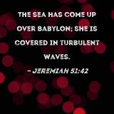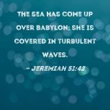 The sea has come up over Babylon; she is covered in turbulent waves.