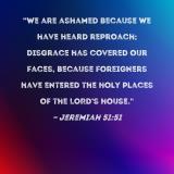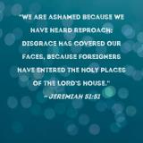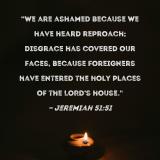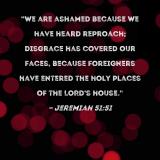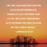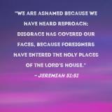 "We are ashamed because we have heard reproach; disgrace has covered our faces, because foreigners have entered the holy places of the LORD's house."