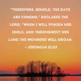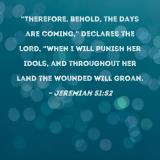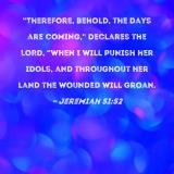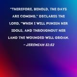 "Therefore, behold, the days are coming," declares the LORD, "when I will punish her idols, and throughout her land the wounded will groan.
