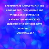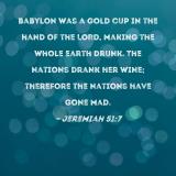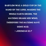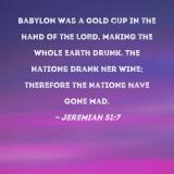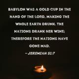 Babylon was a gold cup in the hand of the LORD, making the whole earth drunk. The nations drank her wine; therefore the nations have gone mad.