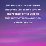 But Nebuzaradan captain of the guard left behind some of the poorest of the land to tend the vineyards and fields.