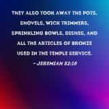 They also took away the pots, shovels, wick trimmers, sprinkling bowls, dishes, and all the articles of bronze used in the temple service.