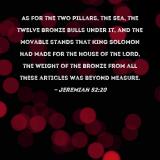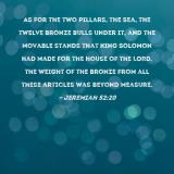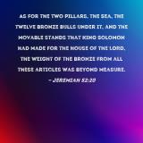 As for the two pillars, the Sea, the twelve bronze bulls under it, and the movable stands that King Solomon had made for the house of the LORD, the weight of the bronze from all these articles was beyond measure.