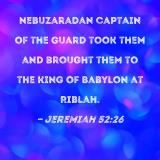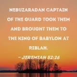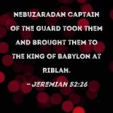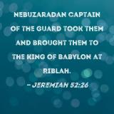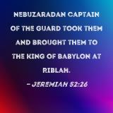 Nebuzaradan captain of the guard took them and brought them to the king of Babylon at Riblah.