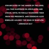For because of the anger of the LORD, all this happened in Jerusalem and Judah, until He finally banished them from His presence. And Zedekiah also rebelled against the king of Babylon.
