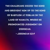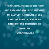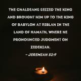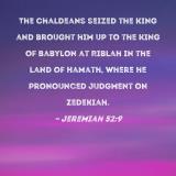 The Chaldeans seized the king and brought him up to the king of Babylon at Riblah in the land of Hamath, where he pronounced judgment on Zedekiah.