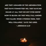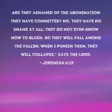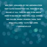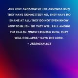 Are they ashamed of the abomination they have committed? No, they have no shame at all; they do not even know how to blush. So they will fall among the fallen; when I punish them, they will collapse," says the LORD.