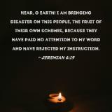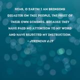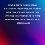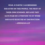 Hear, O earth! I am bringing disaster on this people, the fruit of their own schemes, because they have paid no attention to My word and have rejected My instruction.