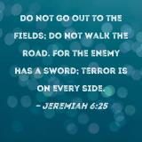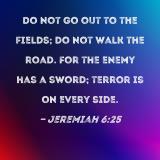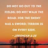 Do not go out to the fields; do not walk the road. For the enemy has a sword; terror is on every side.