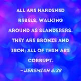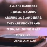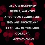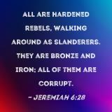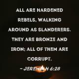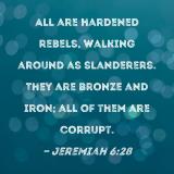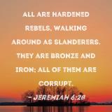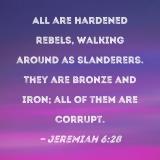 All are hardened rebels, walking around as slanderers. They are bronze and iron; all of them are corrupt.