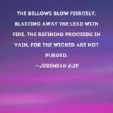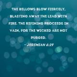 The bellows blow fiercely, blasting away the lead with fire. The refining proceeds in vain, for the wicked are not purged.