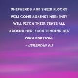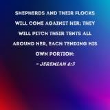 Shepherds and their flocks will come against her; they will pitch their tents all around her, each tending his own portion: