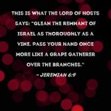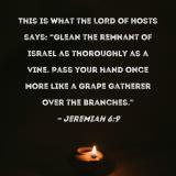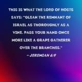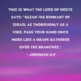 This is what the LORD of Hosts says: "Glean the remnant of Israel as thoroughly as a vine. Pass your hand once more like a grape gatherer over the branches."