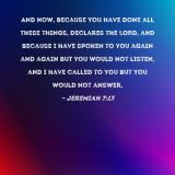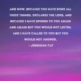 And now, because you have done all these things, declares the LORD, and because I have spoken to you again and again but you would not listen, and I have called to you but you would not answer,