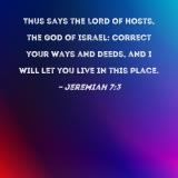 Thus says the LORD of Hosts, the God of Israel: Correct your ways and deeds, and I will let you live in this place.