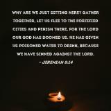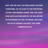 Why are we just sitting here? Gather together, let us flee to the fortified cities and perish there, for the LORD our God has doomed us. He has given us poisoned water to drink, because we have sinned against the LORD.