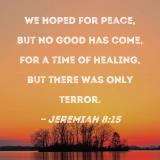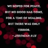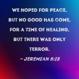 We hoped for peace, but no good has come, for a time of healing, but there was only terror.