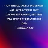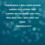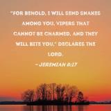 "For behold, I will send snakes among you, vipers that cannot be charmed, and they will bite you," declares the LORD.