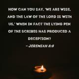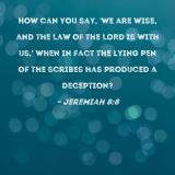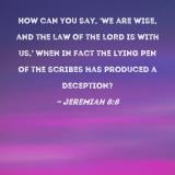 How can you say, 'We are wise, and the Law of the LORD is with us,' when in fact the lying pen of the scribes has produced a deception?