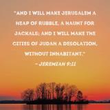 "And I will make Jerusalem a heap of rubble, a haunt for jackals; and I will make the cities of Judah a desolation, without inhabitant."