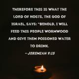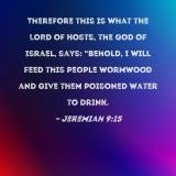 Therefore this is what the LORD of Hosts, the God of Israel, says: "Behold, I will feed this people wormwood and give them poisoned water to drink.