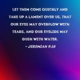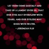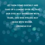 Let them come quickly and take up a lament over us, that our eyes may overflow with tears, and our eyelids may gush with water.