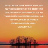 Egypt, Judah, Edom, Ammon, Moab, and all the inhabitants of the desert who clip the hair of their temples. For all these nations are uncircumcised, and the whole house of Israel is uncircumcised in heart."
