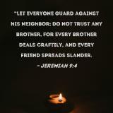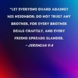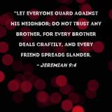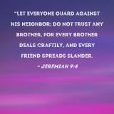 "Let everyone guard against his neighbor; do not trust any brother, for every brother deals craftily, and every friend spreads slander.