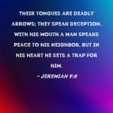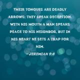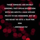 Their tongues are deadly arrows; they speak deception. With his mouth a man speaks peace to his neighbor, but in his heart he sets a trap for him.