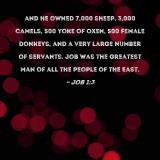 and he owned 7,000 sheep, 3,000 camels, 500 yoke of oxen, 500 female donkeys, and a very large number of servants. Job was the greatest man of all the people of the East.