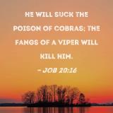 He will suck the poison of cobras; the fangs of a viper will kill him.