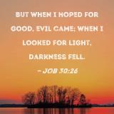 But when I hoped for good, evil came; when I looked for light, darkness fell.