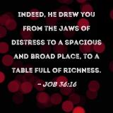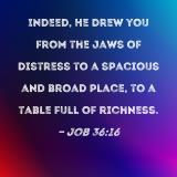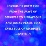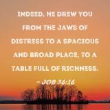 Indeed, He drew you from the jaws of distress to a spacious and broad place, to a table full of richness.
