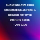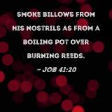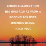 Smoke billows from his nostrils as from a boiling pot over burning reeds.