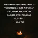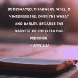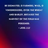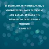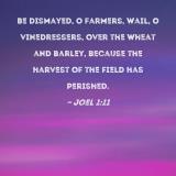 Be dismayed, O farmers, wail, O vinedressers, over the wheat and barley, because the harvest of the field has perished.