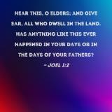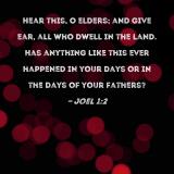Hear this, O elders; and give ear, all who dwell in the land. Has anything like this ever happened in your days or in the days of your fathers?