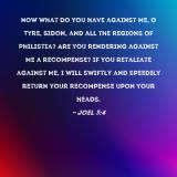 Now what do you have against Me, O Tyre, Sidon, and all the regions of Philistia? Are you rendering against Me a recompense? If you retaliate against Me, I will swiftly and speedily return your recompense upon your heads.