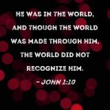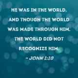 He was in the world, and though the world was made through Him, the world did not recognize Him.