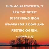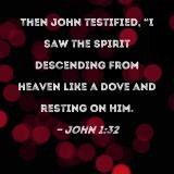 Then John testified, "I saw the Spirit descending from heaven like a dove and resting on Him.