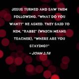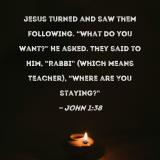 Jesus turned and saw them following. "What do you want?" He asked. They said to Him, "Rabbi" (which means Teacher), "where are You staying?"