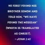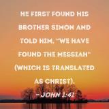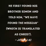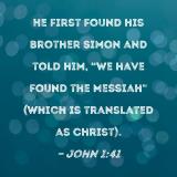 He first found his brother Simon and told him, "We have found the Messiah" (which is translated as Christ).
