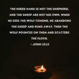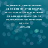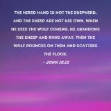 The hired hand is not the shepherd, and the sheep are not his own. When he sees the wolf coming, he abandons the sheep and runs away. Then the wolf pounces on them and scatters the flock.