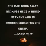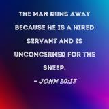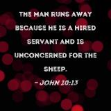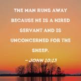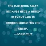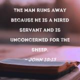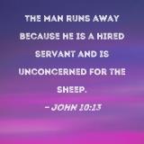 The man runs away because he is a hired servant and is unconcerned for the sheep.