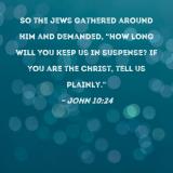 So the Jews gathered around Him and demanded, "How long will You keep us in suspense? If You are the Christ, tell us plainly."